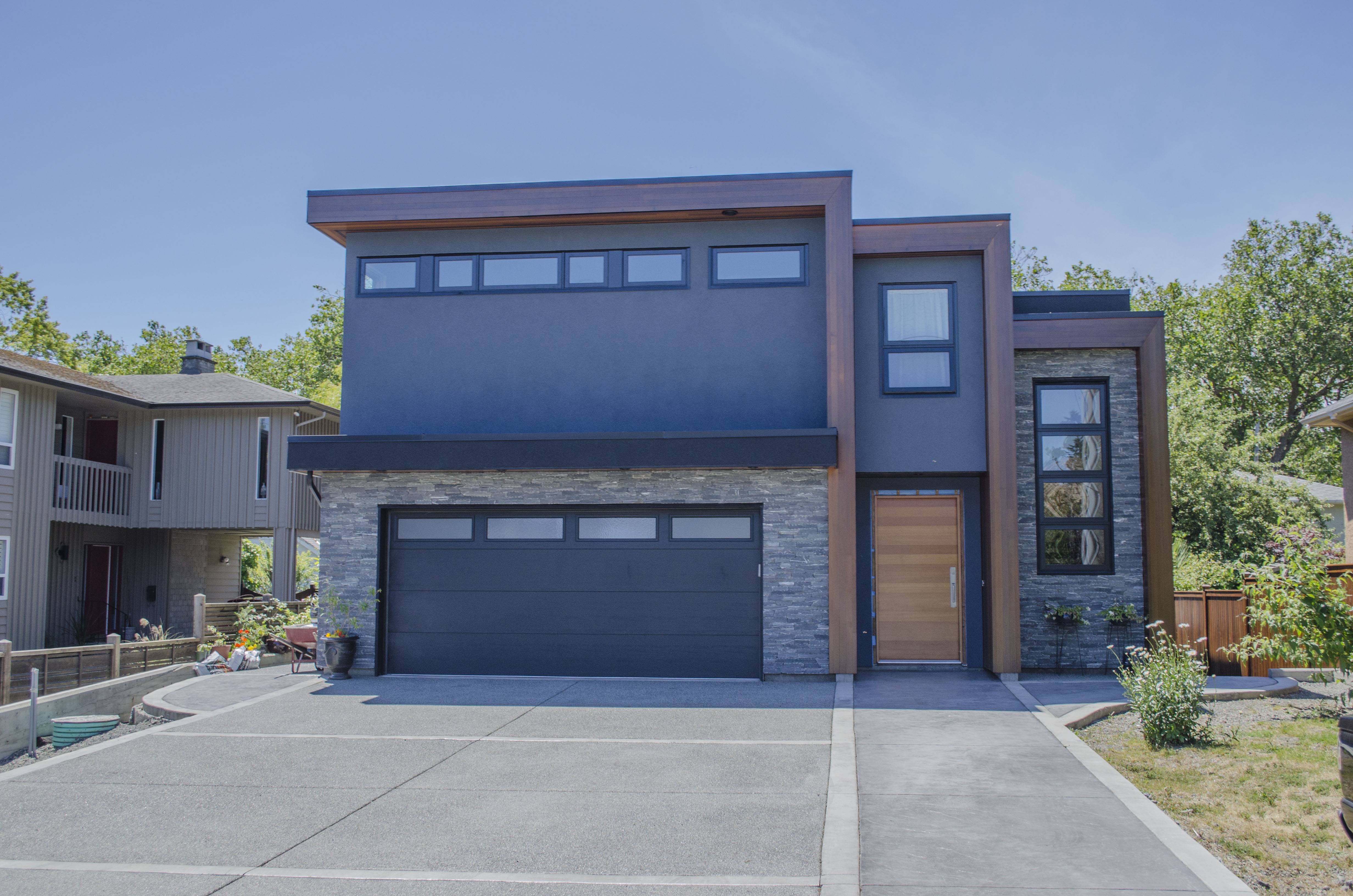 A modern home in Victoria BC featuring Black Pearl Micro Ledge Stone Veneer.