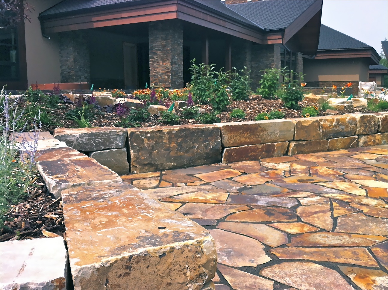 Autumn Gold Retaining Block with Autumn Flame Patio Flagstone