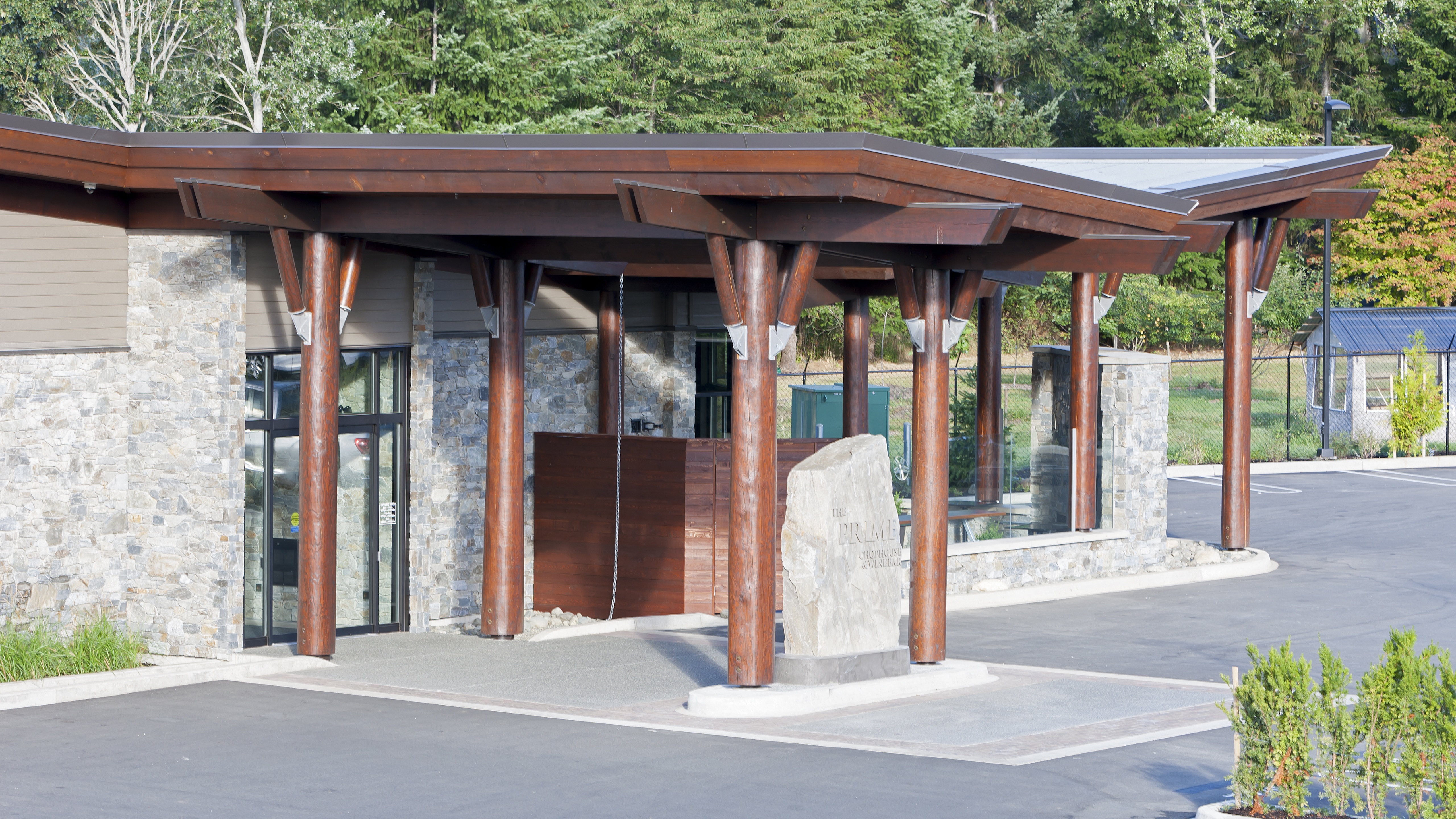 A commercial masonry project located in British Columbia features Natural Ledge Stone Veneer on the exterior walls.