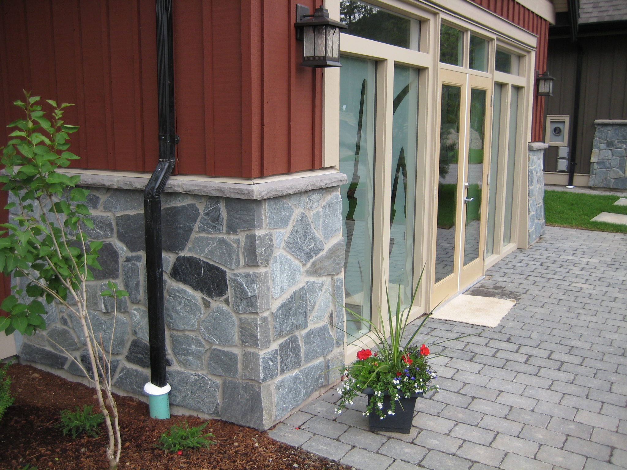 The exterior of this home has incorporated Tofino Sky Field Stone Veneer as a siding material.